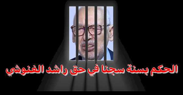 قضت الدائرة الجناحية المختصّة بالنظر في قضايا الارهاب بالمحكمة الابتدائية بتونس بالسجن مدّة عام واحد مع خطية مالية بألف دينارا في حقّ رئيس حركة النهضة راشد الغنوشي.